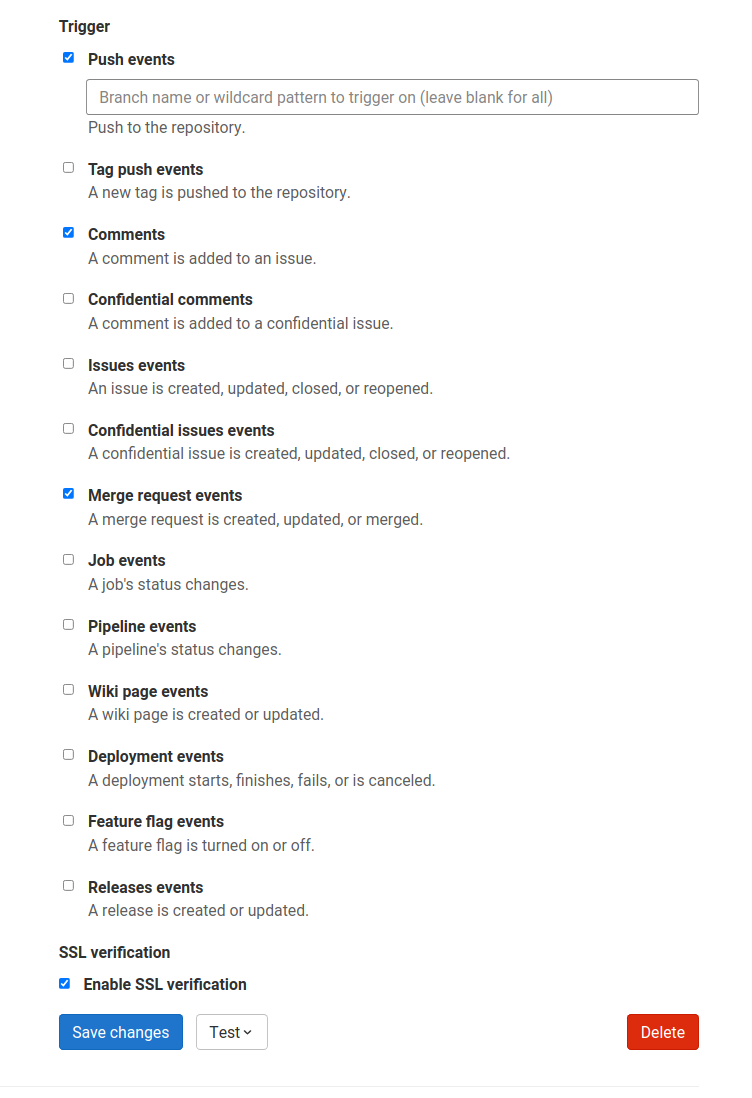 • Merge request Events